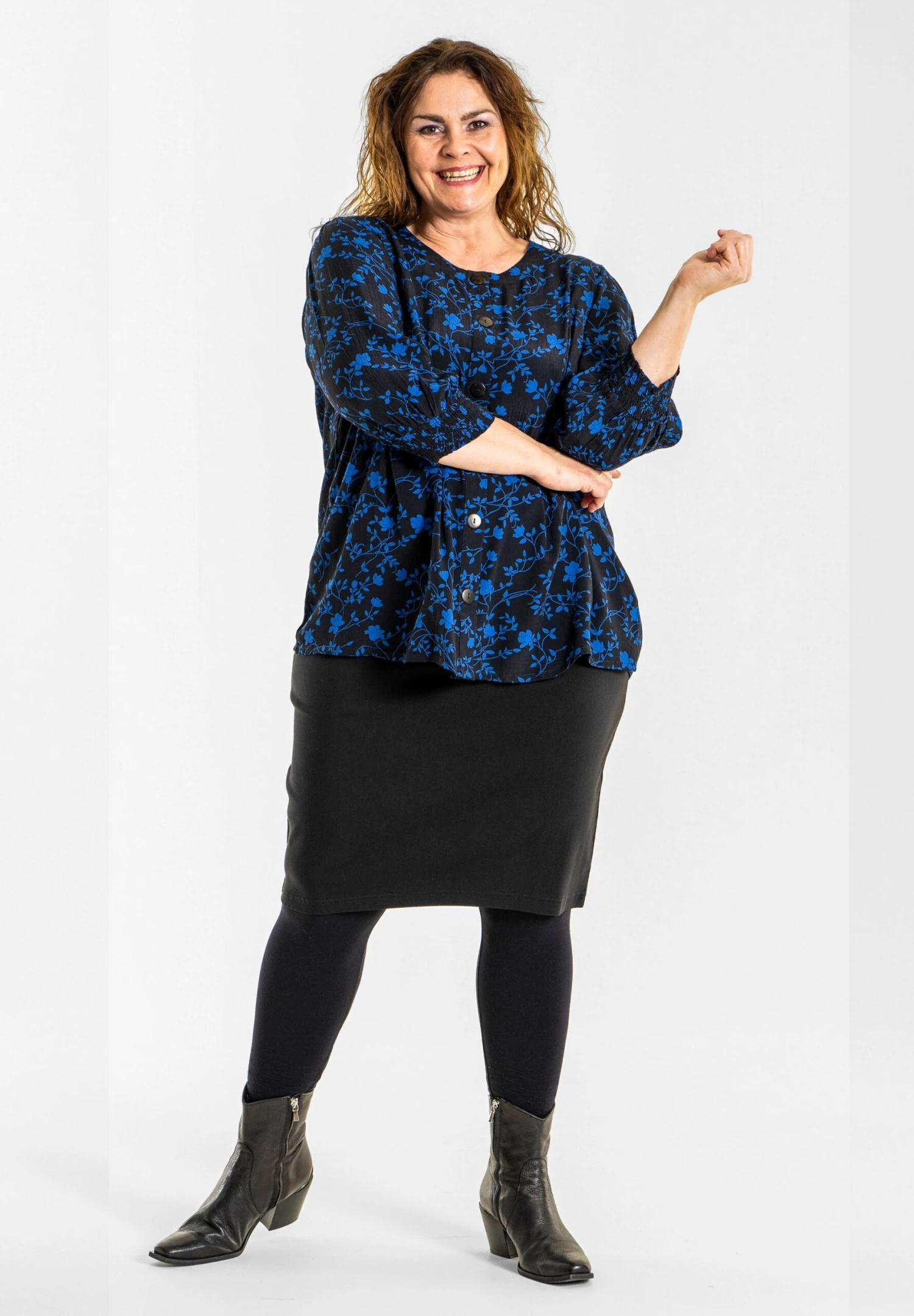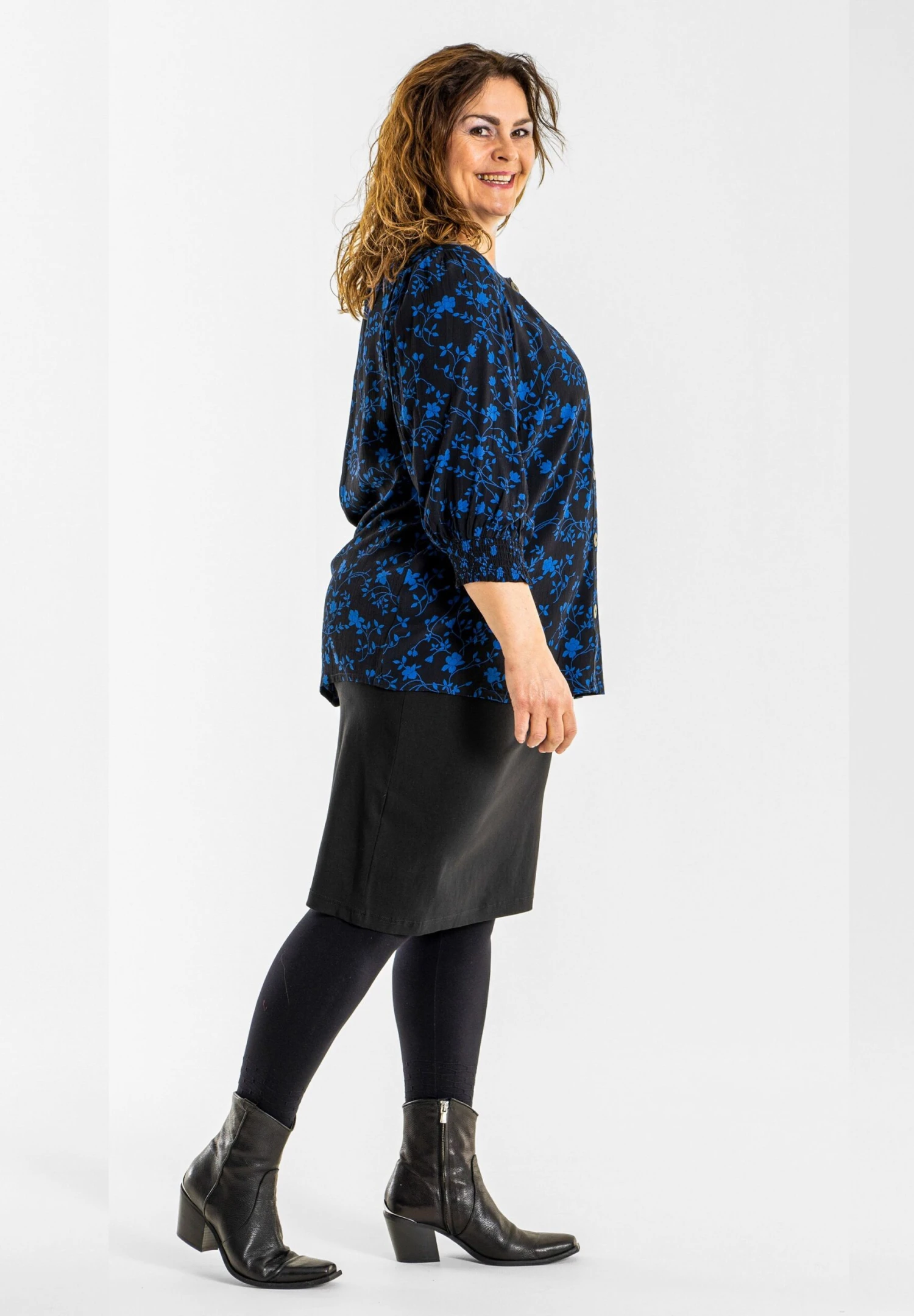 Ingelise – Blouse – Black With Blue Printed